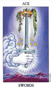 The Suit of Swords is associated with action, change, force, power, ambition, courage and conflict.